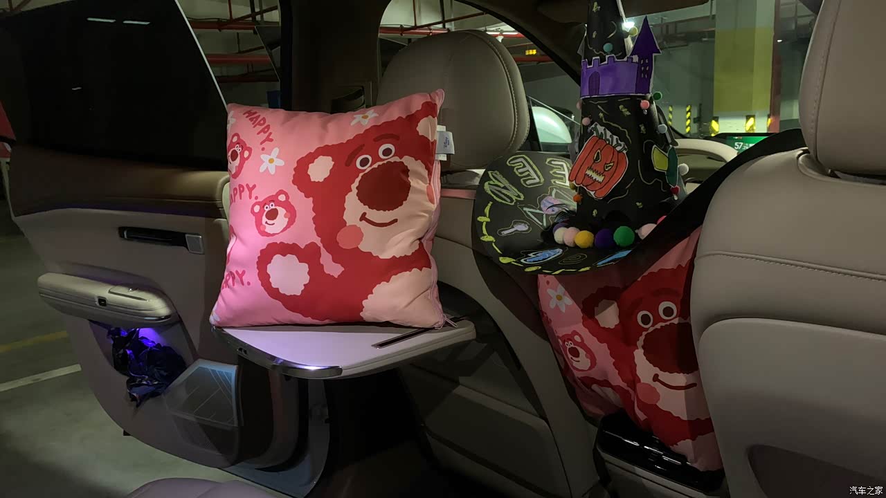 车内空间很大,前排后排坐下都不显得拘束,孩子还可以用小桌板画个画、写个作业。