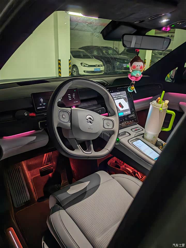 这台车我基本所有的选配都是在内饰上下功夫,选了舒享,选了女王副驾,这两个是必选的,最近天冷了,我是一个很容易手脚冰凉的人,方向盘热了开车舒服多了;有时候在外面真的是冷,上车舒服多了。内饰是灰色,莫兰蒂色系的感觉,雾感雾感的,蛮耐看的。 我很喜欢氛围灯,可以在中控屏上拉出自己想要的颜色;
