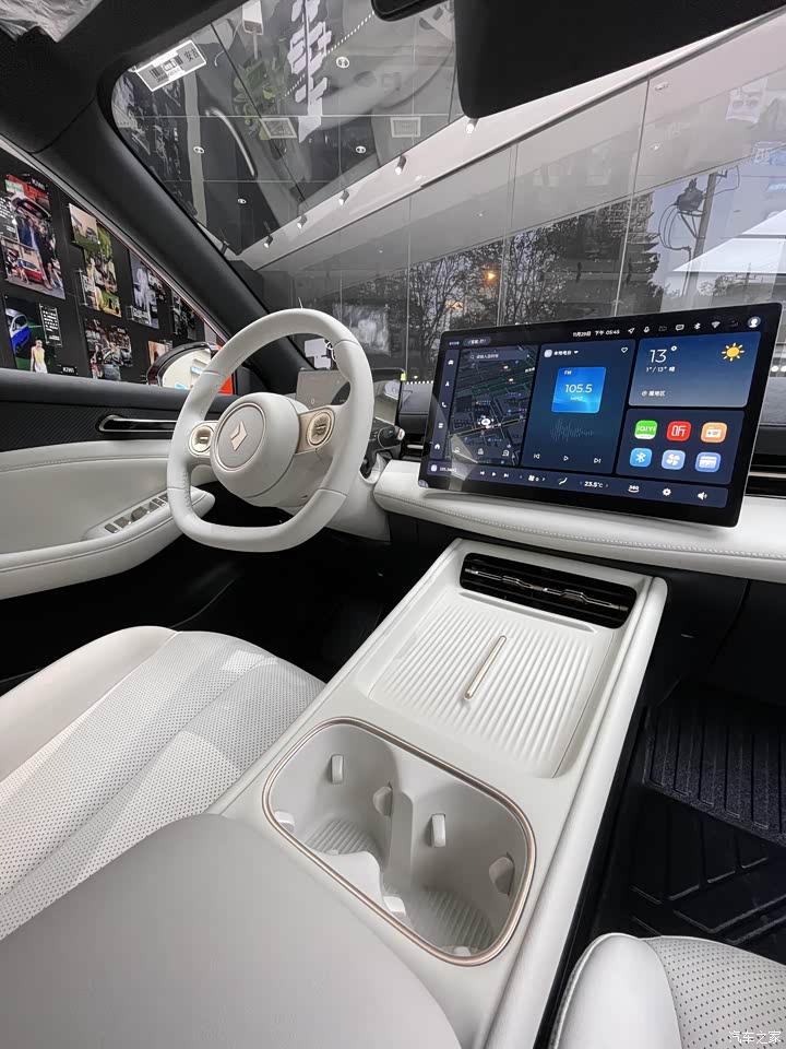 内饰大面积采用软包材质,触感舒适。液晶仪表和中控屏和云朵的感觉差不多。中控屏大的有点就是看导航很方便