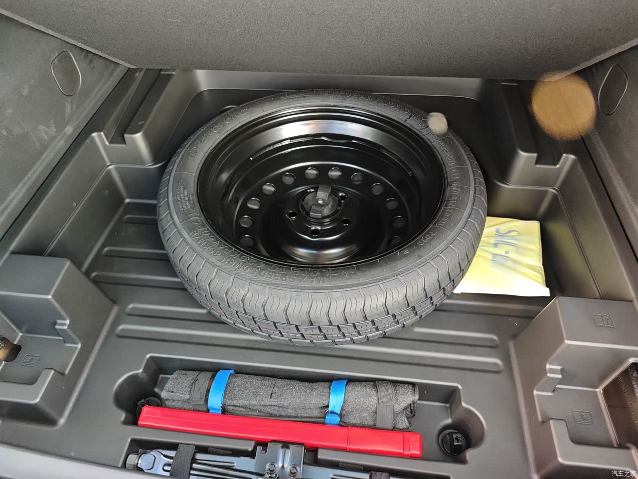 空间非常可以,特别是后排和后备箱的空间,三张图,分别是后备箱空间,后排空间,后排放倒后的图片,可以看见后排座椅放倒后几乎和后备箱是平的,我尝试躺了一下,还可以,1米7左右的身高刚刚好,就是有点硬,铺一个垫子就可以,野营或者是车内休息都是比较方便,躺着会舒服一点(打开天窗透气) 后排的座椅坐起来还可以,可以看到图片中座椅中间是凹进去的,包裹性还是可以的,腿部空间大概2拳多一点的位置,绰绰有余。 最后一张图片是后备箱下方的备胎,还是以往的小尺备胎,备胎工具也都有,中规中矩。