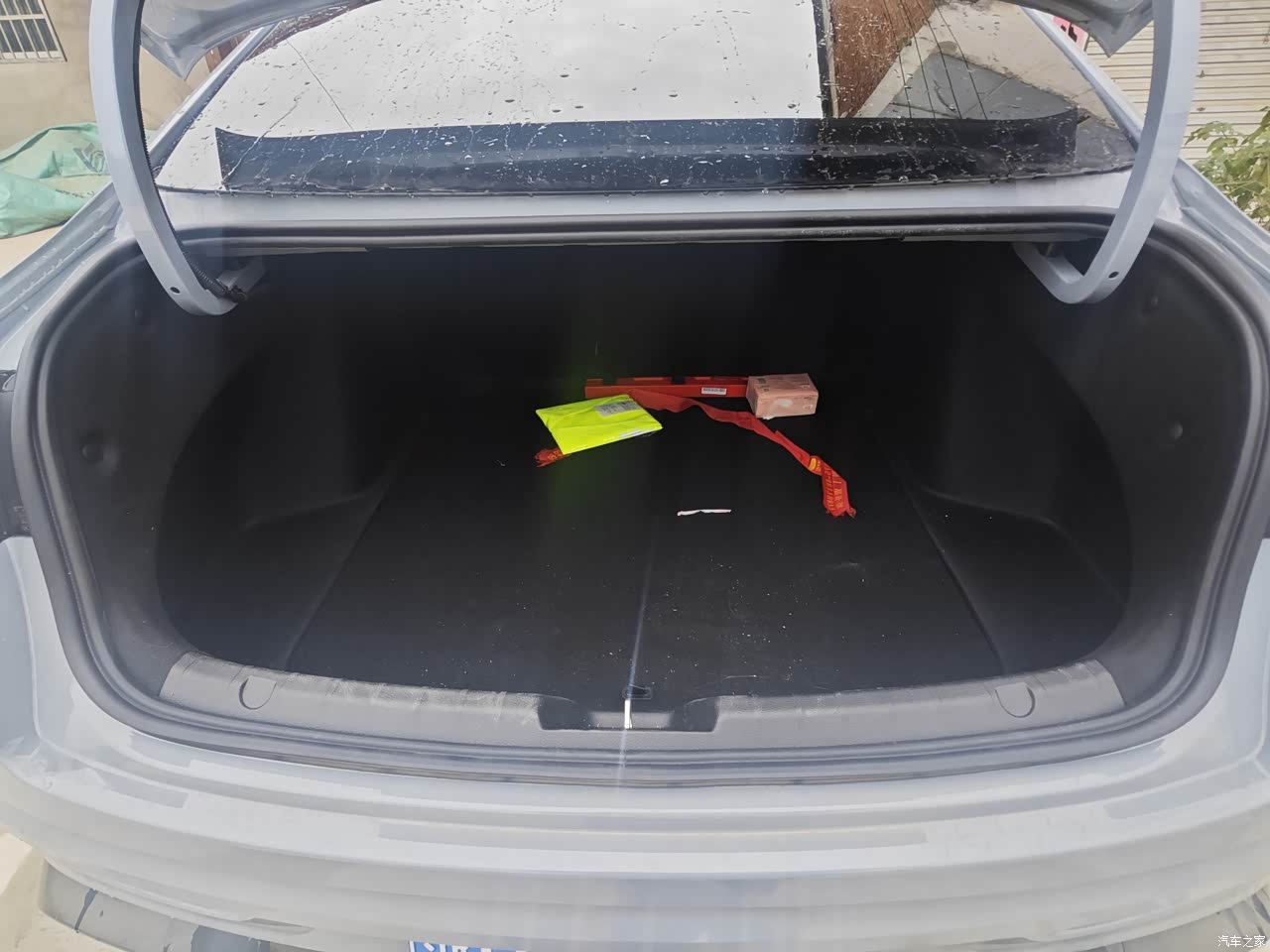 车身尺寸为4785mm×1869mm×1469mm,轴距2800mm,坐在后排腿伸到座椅下面,还有两拳多距离,后备箱容量也挺大的(很深)