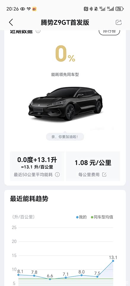 这个13的油耗是零下三度,冰雪天气馈电上山跑出来的,基本上也是这个车正常使用的极限了。平时正常用7个油,开的猛点儿8个油顶天了。我老婆开这个车油耗还能再低点儿,也有不少车友5个油的,总结还是跟脚法有很大关系。不过不得不承认这个车油耗不低。 冬季续航纯电120km左右,夏天150km。