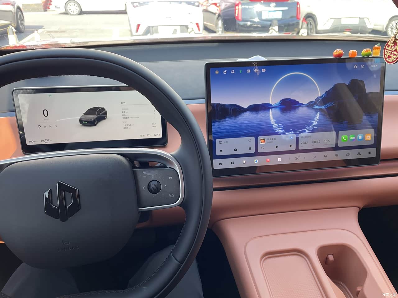 内饰是橙色的,刚开始还不怎么喜欢,毕竟三十大几了,老是感觉太亮眼了,不适合我,后来开多了也就还好,外暗内亮的搭配也不错。