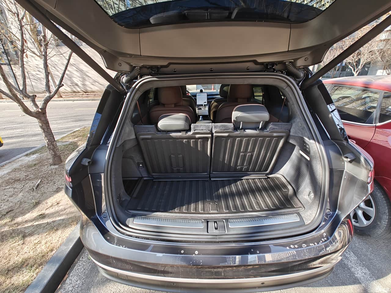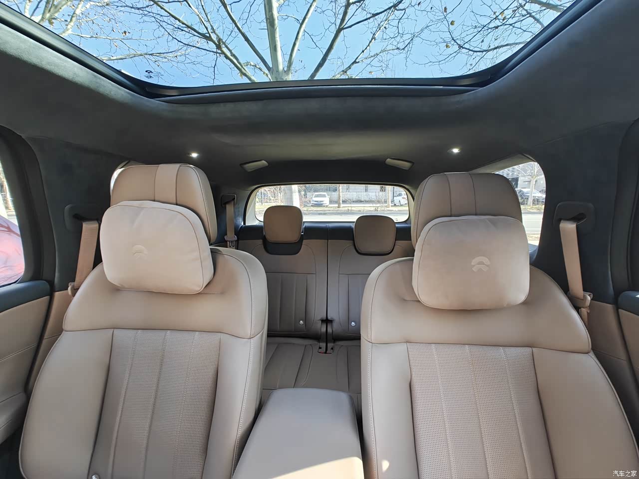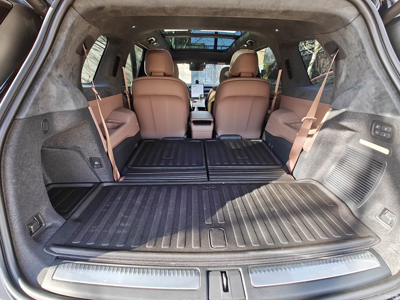 ES8 的空间整体较为宽敞。我身高 185cm,坐在驾驶位,头部空间有一拳多的余量,腿部空间也很充裕,驾驶视野开阔。第二排座椅可以前后调节,当调节到合适位置时,乘坐空间相当舒适,即使是身材较高大的乘客也能轻松应对。然而,如前所述,第三排空间就比较有限了。后备箱空间在六座状态下不算大,只能放置一些小型行李物品。但如果将第三排座椅放倒,空间就会得到极大的拓展,可以轻松装下几个大行李箱或者一些大型物品,满足日常购物和长途旅行的装载需求。反正对于一个轴距为3070mm的大家伙来说,还想奢求什么呢?