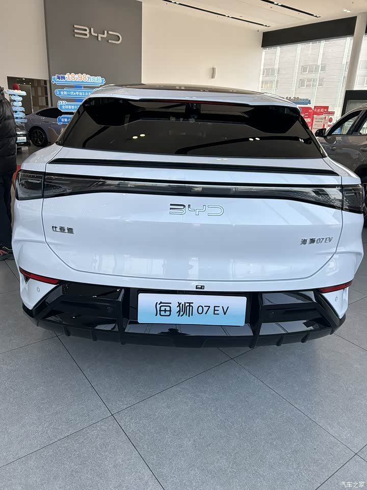 在踏入展厅看到比亚迪海狮07EV的那一刻,我立刻被它独特的外观所吸引。整车线条流畅,充满了未来感。白色的车身在灯光的照耀下显得格外亮眼。 一、外观 从正面看,海狮07EV的前脸设计简洁大气。前大灯造型犀利,点亮时应该会有很强的辨识度。车身侧面,流畅的线条从车头一直延伸到车尾,搭配大尺寸的轮毂,营造出一种运动感。车尾部分,设计简洁却不失层次感,贯穿式的尾灯设计是当下流行的元素,在保证美观的同时也增加了行车的安全性。 二、内饰与配置 进入车内,内饰给人一种豪华且科技感十足的感觉。方向盘上的比亚迪标志彰显了品牌身份,中控台上的大尺寸显示屏操作起来十分流畅,显示清晰度也很高。车内的各种按钮布局合理,操作方便。特别是换挡区域的设计,既美观又实用,电子换挡杆握感舒适。 三、空间与舒适性 在空间方面,海狮07EV表现出色。前排座椅宽敞,腿部和头部空间都很充裕。虽然没有进行长时间的乘坐体验,但从座椅的材质和设计来看,应该能提供不错的舒适性。后排空间也能够满足日常出行和家庭使用的需求。 四、驾驶感受 整体试乘试驾过程中感觉这款车加速迅猛:海狮07 EV提供了单电机和双电机等不同动力版本选择,动力输出强劲。运动模式下,轻点油门,车辆动力响应及时,加速迅猛,超车等操作轻松完成. 制动灵敏:配备四活塞制动卡钳及打孔通风盘,制动踏板虚位少,刹车力道足且来得迅猛,能给驾驶者足够的信心. 底盘悬挂 减震出色:采用云辇-C底盘及前双叉臂、后多连杆独立悬架组合,经过减速带时,悬架能快速吸收冲击,车辆不颠不颤;在高速行驶遇到路面起伏或过弯时,悬架支撑良好,车辆寻迹性强,整体平稳. 通过性好:较高的离地间隙及良好的底盘调校,使其在通过一些不太好的路面时,能较好地过滤颠簸,保证车内乘客的舒适性. 五、总结 比亚迪海狮07EV无论是外观设计还是内饰配置,都展现出了比亚迪在新能源汽车领域的技术实力和创新精神。它不仅具有高颜值,还在实用性和舒适性方面下足了功夫。对于那些追求时尚外观和环保出行的消费者来说,海狮07EV无疑是一个值得考虑的选择。