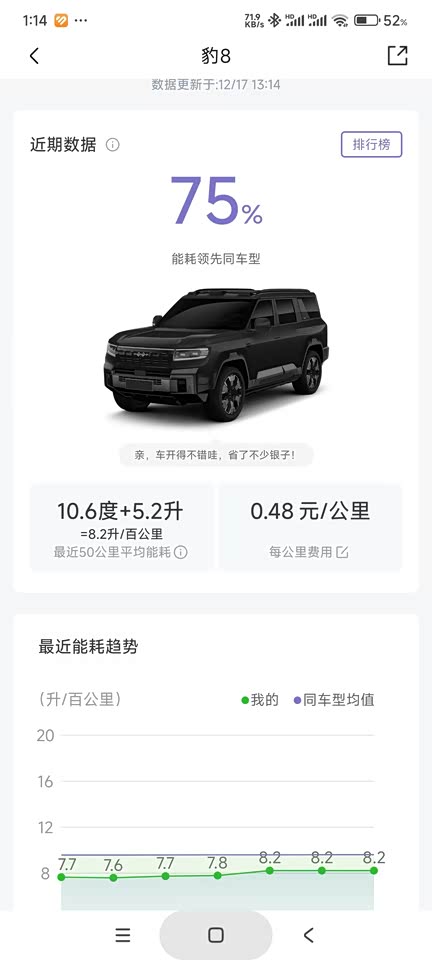 8.2L百公里油耗