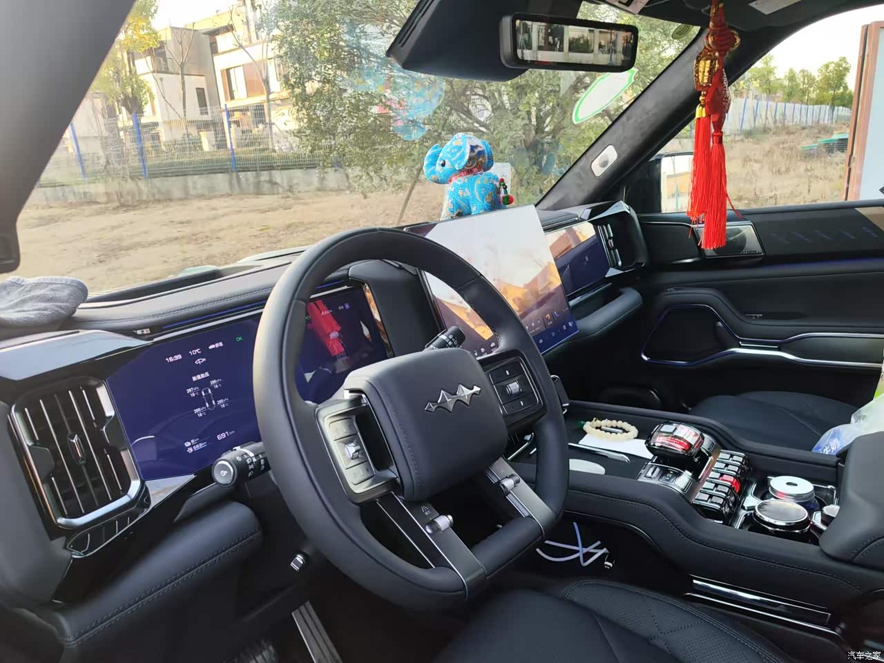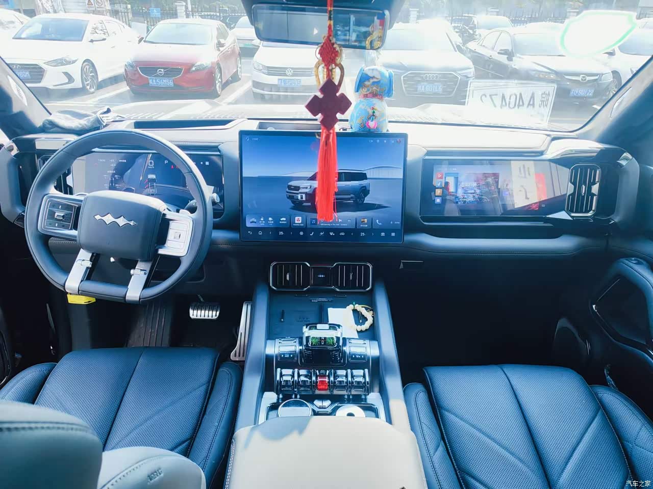 第六说实在的能够购买方程豹第一还是它的颜值符合我的审美观,威武大气,尽显阳刚之气。我还特意选择了黑外黑内的装束,整个车看起来更是沉稳霸气。第二是它的仪表台布局符合我的审美,左右对称的两块12.3英寸屏中间一块17.3英寸的大屏,这样的布局才符合这车的格调,很不喜欢有的车中间一块大屏的那种。第三就是该车精致的内饰了,超过了我现在的宝马5GT,皮质和细节做的都很好。第四是智能方面配置的那真是太全了,HUD抬显、随处可见的Type-C充电口、6KV的外放电、座椅按摩加热、方向盘加热、车载冷暖冰箱、全车数不尽的激光雷达还有迪瓦雷音响(音质比我现在的2006款宝马5GT不知名的音响不知要好多少)第五就是强劲的动力,方便良好的操控。第六能予我更多的生活方式和生活乐趣。选择方程豹选择更多的生活方式!