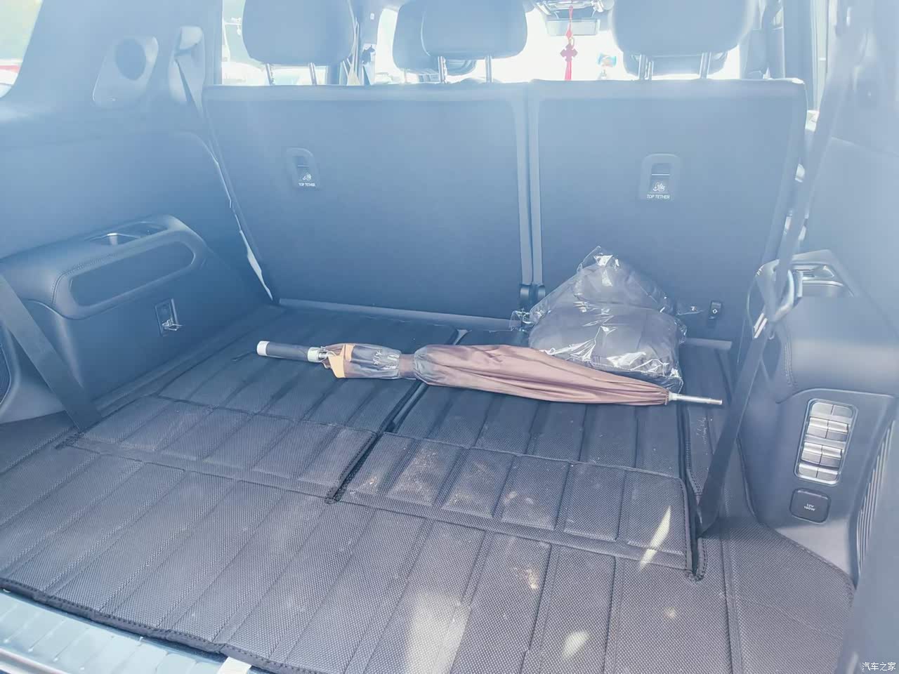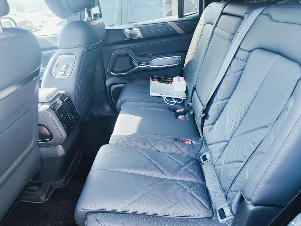由于车子本身就够大,所以里面的空间那自然是完全够用,可以说是宽敞,前排是头等舱,二排是商务舱,三排是备用舱,即便是两个大人也完全不觉得压抑,因为车子足够高