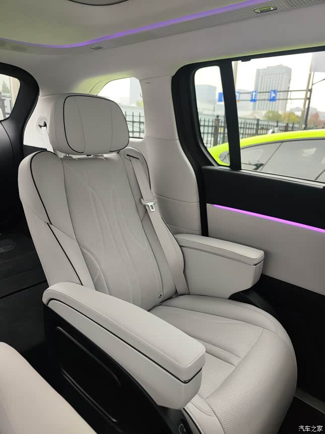 大型MPV整体的空间非常大,进入后排后排座椅还能够电动前后调整移动,方便你拥有更好的腿部空间和舒适的角度,同时也能够控制后排天幕的关合,平时大太阳关闭天幕之后也不会很晒。放下娱乐屏之后,后排就像移动的家庭影院,冰箱彩电大沙发啥都有了,就算出远门后排的小孩看着电视也是不哭不闹了。第三排的座椅能够一键自动放倒腾出超大的后备箱空间,露营也非常合适,立起来平时也能够方便坐人,都是全自动模式让我这种懒人非常欣喜。坐到前排给我的感受更加不一样,和以往的紧凑型轿车不一样,前排的空间非常的大,而且给到你行驶中的视野也很广没有很多视野盲区,驾驶位能够通过中控屏一键控制后排电吸门和娱乐屏非常方便