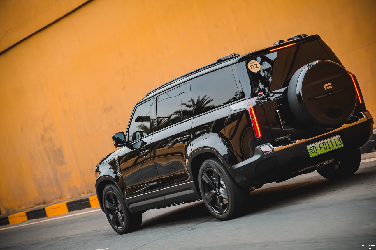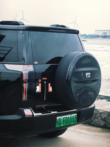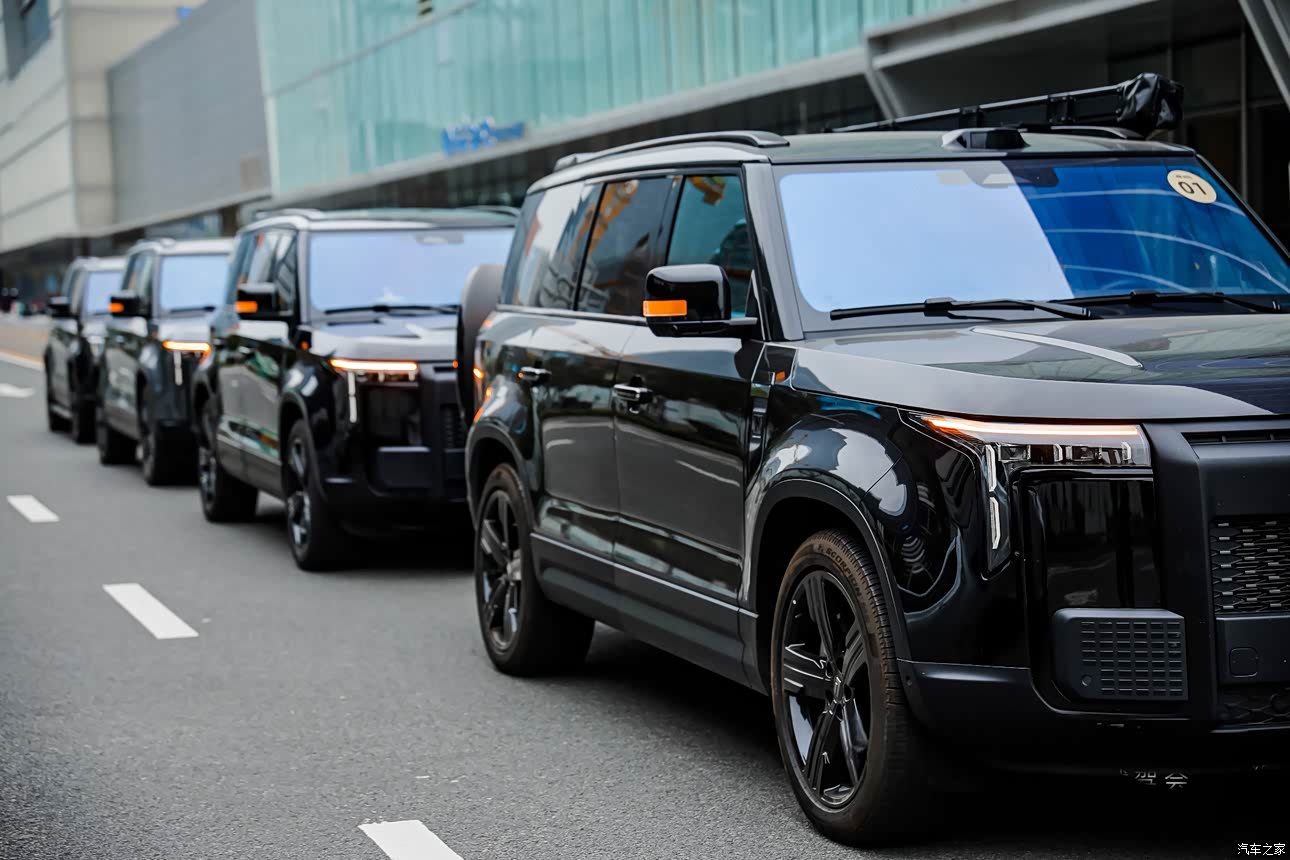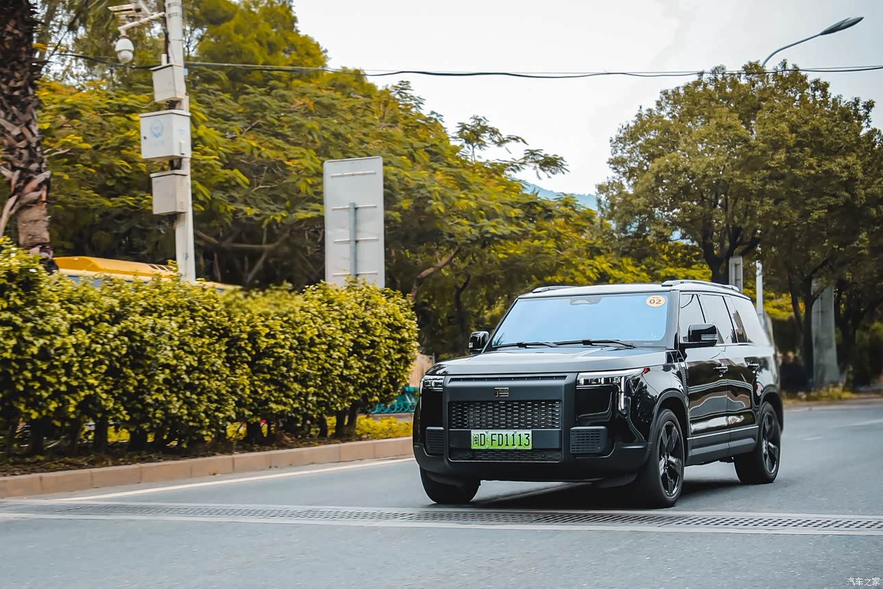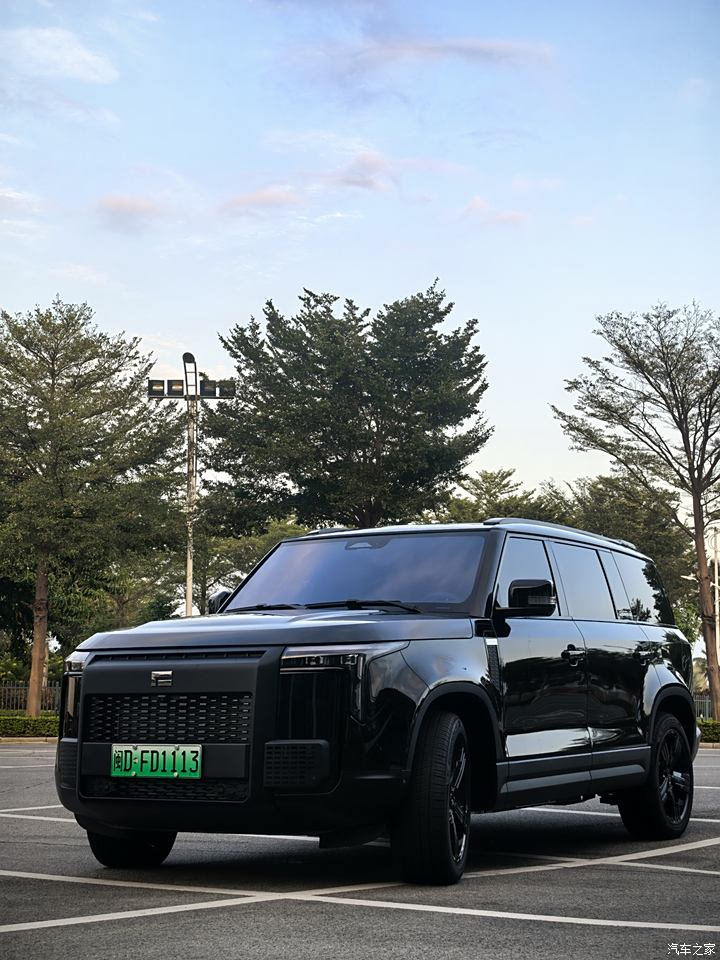 极石01外观霸气,5米车长、2米车宽,给人一种不怒自威的感觉。颜值在一众方盒子车型中也绝对算得上顶尖,属于那种车群中一眼望去肯定能抓住你眼睛的车。我选择的颜色是黑武士,通体黑色车漆、加上黑色轮毂,贴了玻璃膜加深了玻璃的颜色,全车霸气十足。