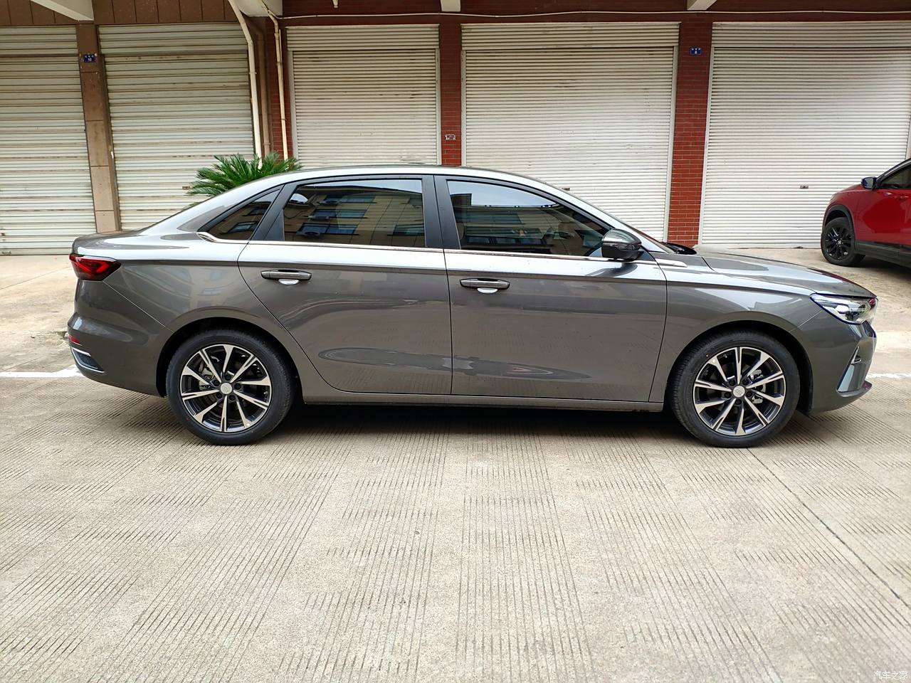 外形比较简单的设计,但是小小的时尚感还是有的。比如说银色的中网车标以及后面贯穿式的红色尾灯。还有侧面看腰线贯穿整车,看着运动感也不错的。