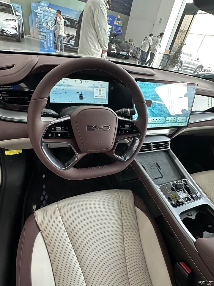 内饰风格以简约舒适为主,营造出温馨的车内氛围。中控台配备12.8英寸DiLink自适悬浮中控大屏,支持语音控制,操作流畅,科技感十足。仪表盘采用了悬浮式设计,不仅时尚大气,而且极大地提升了驾驶者的视野。中控台则配备了大尺寸的液晶触控屏,操作便捷,功能丰富,无论是导航、音乐还是娱乐,都能轻松应对。