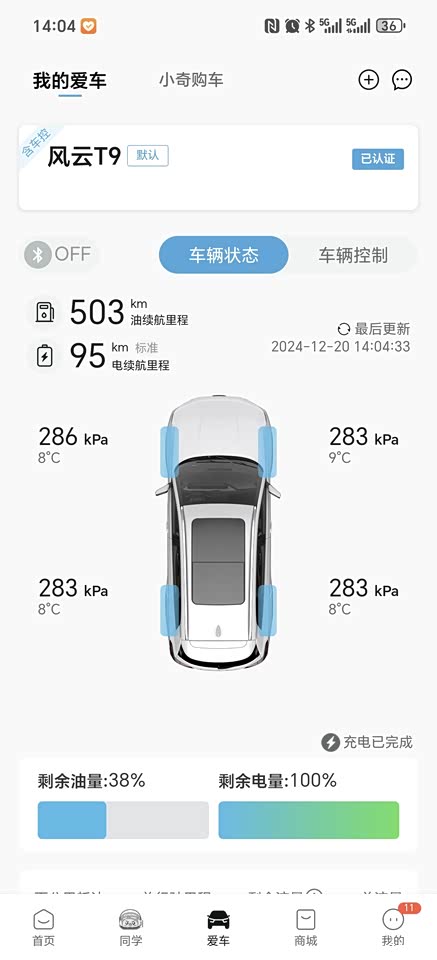 购买风云T9正好一个月,从各方面给大家分享一下自己的用车感受,1价格、2外观、3内饰、4空间、5动力、6操控、7安全性能、8续航及油耗,以下是对其的评价: 1价格: 因为自己名下有辆18年之前的纯电小车,正好满足国家的报废补贴,所以打算更换一辆新车,车展、本地4s各品牌看了一个遍,结合自己的预算,最终确定了车型风云T9五座豪华版本。持续关注风云T9三个多月,最终在11月拿下。本人在济南购车,当地两家4s店,但为同一老板,所以两家比价差距很小,由于是全款,可谈空间更少,贷款除了返利还能有3K的优惠,最终15.59-2(国补)-1(厂家置换)-寥寥的现金优惠+0.47的保险全款拿下,除首保外,又额外给了一次保养,跟全国各地的其他朋友对比,价格不算优惠。 2外观: 当时看到宣传的第一眼(白车),感觉这车确实有点丑,但实际看车后大有改观,尤其是黑色车,感觉还是很顺眼的,前脸有封闭式格栅搭配律动格栅或镂空直瀑式设计,线条流畅,车尾贯穿式尾灯与鸭尾式尾翼相得益彰,尤其是豪华版的轮毂,格外惹我喜爱,最终确定了黑色五座豪华。 3内饰: 内饰一共两个配色,黑色和蓝白,感觉蓝白太容易脏了,最后选择了黑色,但是自己最喜欢的还是210公里版本的棕色,但是120公里的不配棕色,算是一个遗憾。 4、空间表现 车身尺寸为4795mm×1930mm×1738mm,轴距2770mm,车内空间宽敞,因为是五座版本,后备箱空间巨大,感觉什么都放得下,五座版本的后排座椅比七座的更厚实,坐感更好,若果后排座椅可以再向后调节一下,就更完美了。 5、动力性能 搭载由1.5T涡轮增压发动机与电动机组成的插电混动系统,让动力表现更加优秀,起步很猛,推背感十足,目前还没上过高速,体验过后再来分享感受。 6、操控性能 悬挂系统调校得当,行驶平稳且操控灵活,隔音效果出色。在较大的弯道处给了很大的信心,对比其他品牌试驾的感受来说好了不止一个度。. 7、安全性能 安全也是我选车比较看重的一方面,高强度钢占比85%,热成型钢比例达21%,配备双铝合金前防撞梁和6吸能盒也是我选择T9的一个重要标志,安全才是最重要的豪华。 8、续航及油耗 官方宣称120公里版本,磷酸铁锂电池,充满电后车机显示95km,目前济南气温在-2°左右,上下班每天28公里,两天充一次电,达成率还能接受,一直使用电,马上临近年关,到时候跑跑长途,看下油耗的表现。 总体来讲,风云T9是十多万这个价位中可以选择的一台家用好车,实用、节能、安全、性能等方面都很均衡,全部五分选手,你怎么看呢?