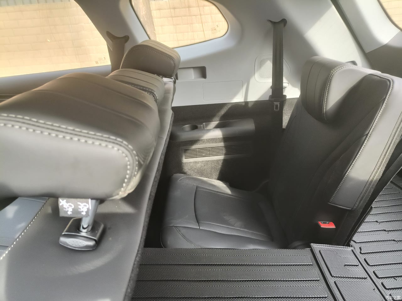 空间还行,第二排往前调整到合适位置第三排空间坐两个成年人也没问题,就是第三排的座垫属于应急型的,坐上去的舒适度没法和前两排比,成年人感觉像是坐在沙发凳上,大腿有悬空,孩子坐着合适但座垫没前两排的座椅软,第三排的座垫薄是有点硬,但绝对能用,6~7人大家庭应该选7座版。平常将第三排座椅放倒当大5座开,这时后备箱就很大了。再放倒第二排座椅的单人位后还能装上自行车这种大件物品。自带车顶行李架方便7座满员时扩展行李空间,必竟7座满员时后备箱空间确实很小了。不过我满员时是6个人,第三排打开1个座位,另1个座位保持放倒状态用来放行李。