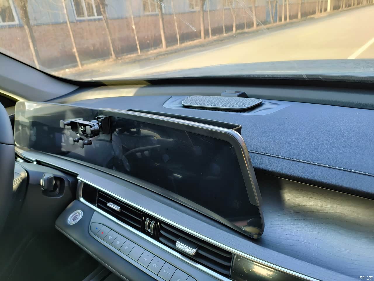 内饰说是模仿奔驰的,反正看着挺好看,我喜欢这种曲面双连屏的风格,对那种大屏不太感冒。方向盘要是圆的更好,这种削边的目前没体会到什么便利性。有车友反馈中控岛台比较宽,开车时我注意观察了一下,可能是我人瘦或是姿势问题我的腿是碰不到中控扶手那块的,只有停车休息时刻意把腿靠上去,不影响正常驾驶。大面积软包的应用质感还是不错的。