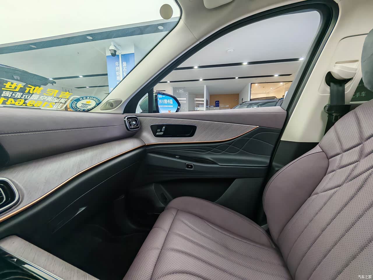首先这款车给我的第一印象就是外观设计时尚:造型大气运动,前脸采用家族式设计,配备封闭式格栅与犀利的LED大灯,车身线条凌厉,悬浮式车顶、溜背设计及熏黑处理的贯穿式尾灯,增添了车辆的豪华感与科幻氛围.内饰配置丰富,车内布局简约现代,质感升级,大量采用皮质材料。安全方面还是很满意的,整车85%高强度钢覆盖,B柱抗拉强度1500MPa,配备高强度铝合金双防撞梁加6吸能盒以及360°环抱式10气囊防护,电池也有四重安全防护技术,为驾乘者提供了全方位的安全保障。