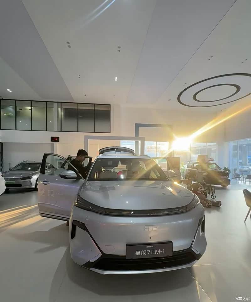 内饰的做工倒是挺精致的,可以开启全景天窗,中控有14.6英寸,屏幕尺寸挺大的,就是在用材上有待加强,主要就是座椅的材质不太好。