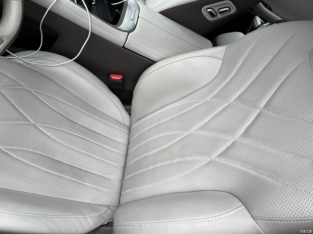 有大屏幕,有各种造型设计,绝对是没啥毛病的。除了我这个试驾车的内饰是白色的,尤其是座椅,已经有肉眼可见的变色啦……一般人都不给你推荐白色座椅。