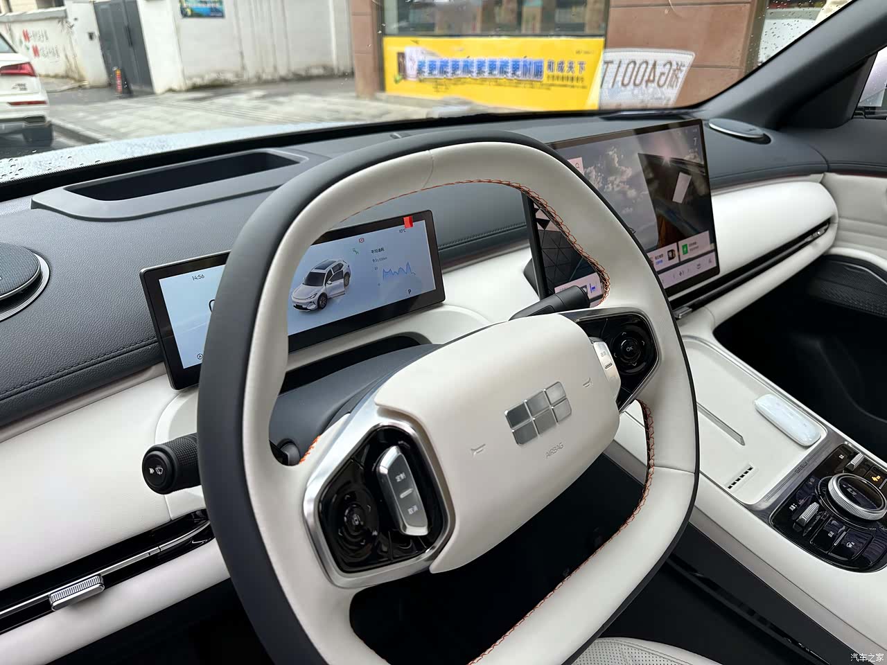 双拼色的平底方向盘造型出众颜色也好看,车内主要颜色就是白色的,在黑色的面板装饰一下,看着很清爽的类型。