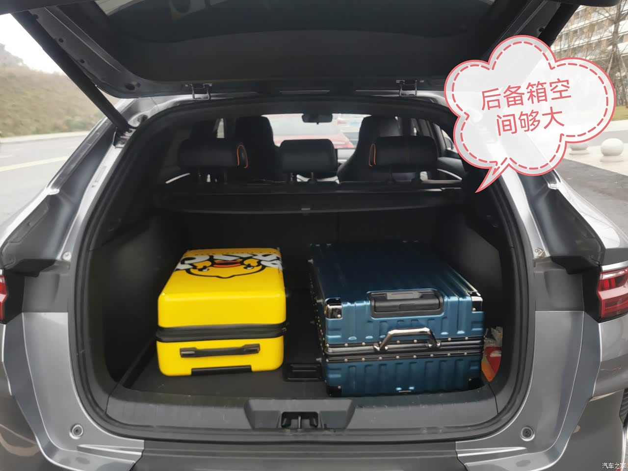 🗣空间很宽敞: ①前排主驾和副驾几乎没有什么限制的感,手脚完全施展得开,尤其是对我们这种胖的人很友好! ②后排坐三个人几乎不受影响,脚也能打开,没有约束感!关键是后排椅子可以放下,累了困了,躺一躺真的也不错! ③后备箱空间也比较大,个人感觉够用了。每次送小孩和她的一个同学回学校,后备箱放两人的行李箱,空间还绰绰有余。