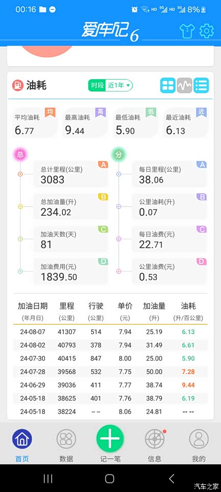 油耗真的很低,120的高速巡航能跑出5个多的油耗。市区堵堵停停会达到8左右。综合油耗6.77,比较满意