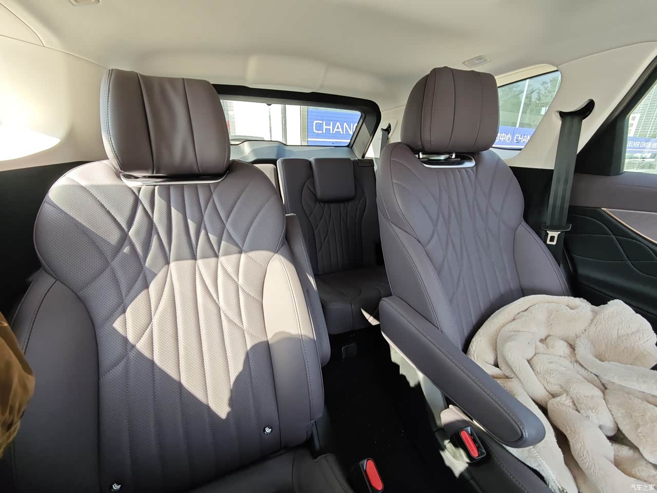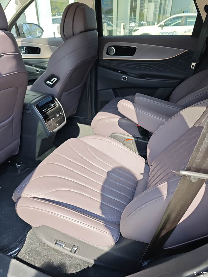 不足之处,第三排腿部空间欠佳,做起来比较拥挤,体格大的坐着难受,小孩老人乘坐比较好,第二个是中控屏这个双联屏的黑边好大,看习惯手机的窄边框和大屏中控再看双连屏,总觉得这个双联屏视觉上不够惊艳,要是换上大屏中控就好了