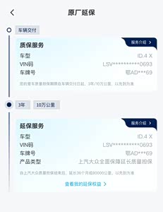 一、3年8万公里的延保的范围:全面保障质量担保,包括汽车/柴油发动机:包括内部的润滑部分等;变速箱:自动、手动或分动器等;前/后轮驱动:包括驱动/差速器的总成;电气系统;刹车系统;空调系统;冷却系统;燃料系统;前/后悬挂;转向系统;高科技组件及娱乐系统等 二、延保需要提供的材料:身份证正反面;机动车发票;行驶证;还有仪表盘和当天报纸或者小票的照片(行驶里程和当天带服务的购物小票) 三、办理延保的方式:可以使用大众官方商城发放的v豆进行抵扣,这点非常的人性化。 四、延保成功后有2种方式进行查看: 1、首页爱车—用车服务—原厂延保—查看凭证; 2、首页我的—我的爱车—主账号—爱车权益—延保凭证。 车辆在使用过程中未知的因素较多,选择原厂的延保服务,能够给我们用车带来更多的保障。上汽大众原厂延保服务是一种为客户提供在整车厂提供的免费保修期之外,延长一定时间段或公里数保修的契约服务。在整个延长保修期间内,只要符合延长保修赔付的要求,对于车辆出现的任何机械或电器故障,上汽大众将提供免费维修。希望我的分享能够给各位车友带来帮助。