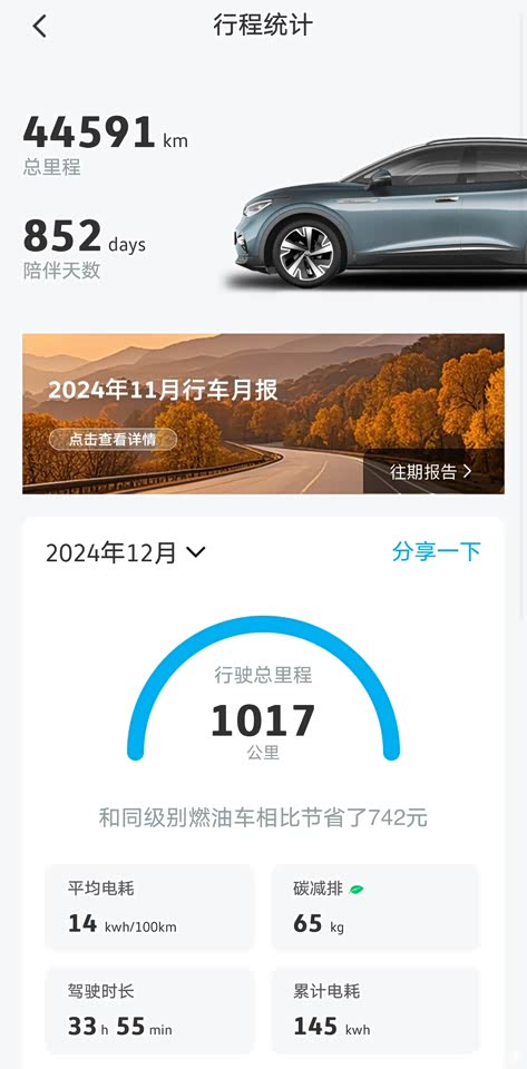 当年选择购买上汽大众ID4x的两个理由: 1、价位的默契:它的售价精准落在我们的预算区间里,既不用为了买车过度压缩生活品质,也没有因价格低廉让人顾虑品质,这种“不高不低刚刚好”的平衡,让选择变得格外轻松。 2、颜值的克制:没有浮夸的设计语言,也没有扎眼的色彩搭配,流畅且沉稳的线条勾勒出简约大气的轮廓。日常通勤时,它融入车流不张扬;家庭出游时,又自带一份低调的质感,就像一位沉稳可靠的伙伴,默默契合着我们对家用车“踏实耐看”的所有想象。 使用三年以来还是有不少我对这款车的喜爱: 1、底盘质感出众。ID4X的起步很轻快,没有燃油车的顿挫感,踩下加速踏板时,动力输出平顺又及时,在早晚高峰的拥堵路段,跟车、变道都很灵活。它的底盘调校也很用心,过减速带或坑洼路面时,悬挂能很好地过滤颠簸。 2、对于油车,用车成本确实非常的低。我是自己安装充电桩,每天晚上11点到第二天早上7点的电价是0.47元。一个月电费不到200元,但是每个月都跑1500公里以上,相对于油车来说真的是太省钱。另外去有些商城我都会给爱车安排充电,这样可以免费停车2小时,真的是油车车主无法体会到的乐趣。