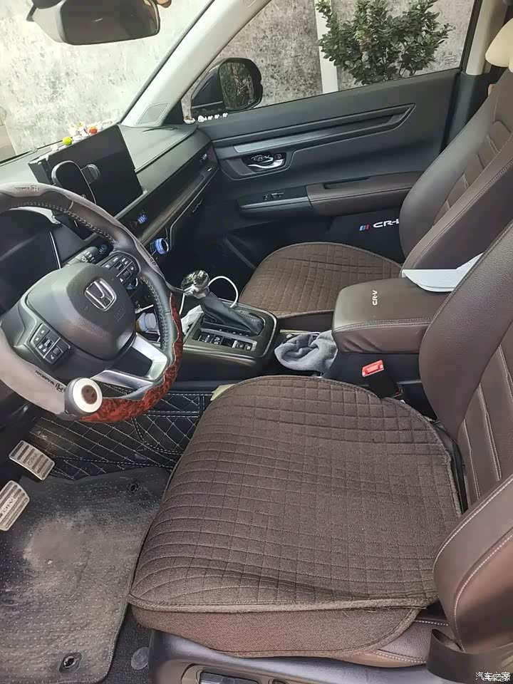 我的睿行版带电动调节的座椅,空间充足。长途开车的话,座椅舒适性比较好。第2排空间也挺大的,靠背可以往下调。第2排乘客坐着久坐应该不累。 Crv的车门能够90度开启,实属意外。 棕色内饰。个人觉得比黑色的好看。有些人说crv的内饰很塑料,很单调。平民百姓图个实用就好了,其实不用很多高科技的,很多东西都用不上。没必要整些花里胡哨的。我给内饰稍微的装饰了一下。在网上买了一些小配件。供大家参考一下。