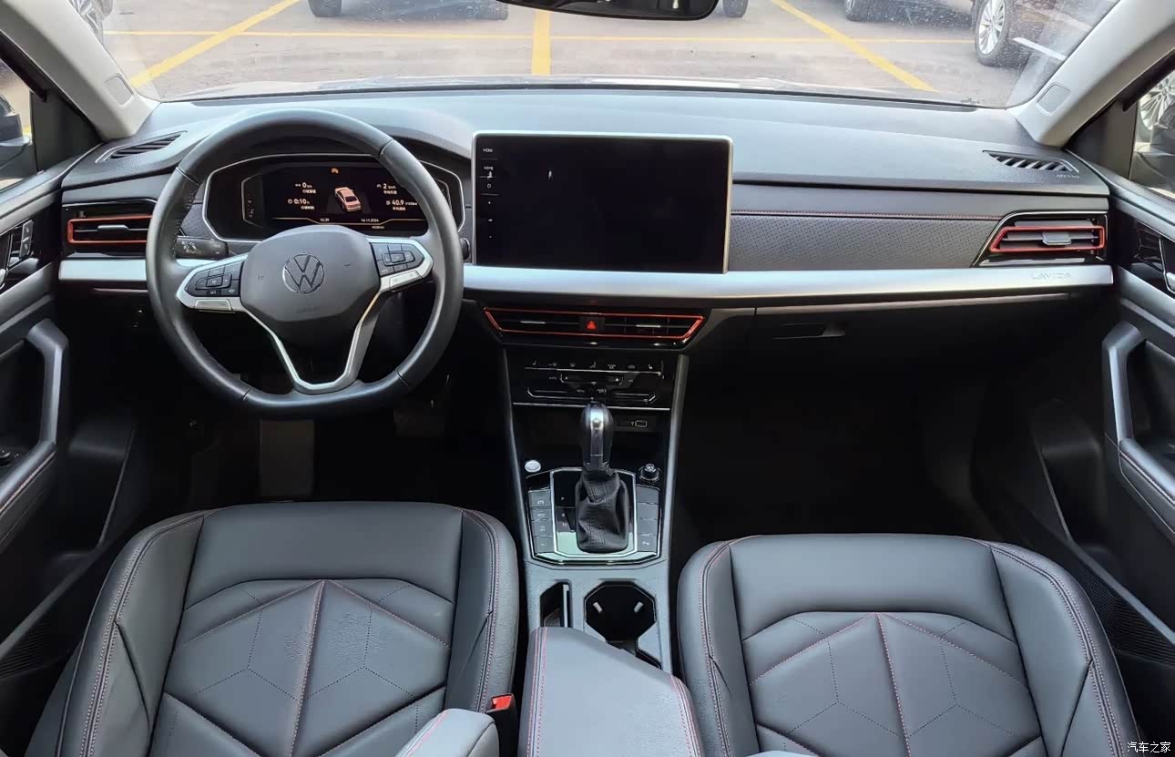 配备10.25英寸全液晶仪表盘、12英寸中控屏幕 。采用皮质包裹的方向盘和座椅,搭配红色缝线,运动感十足 。