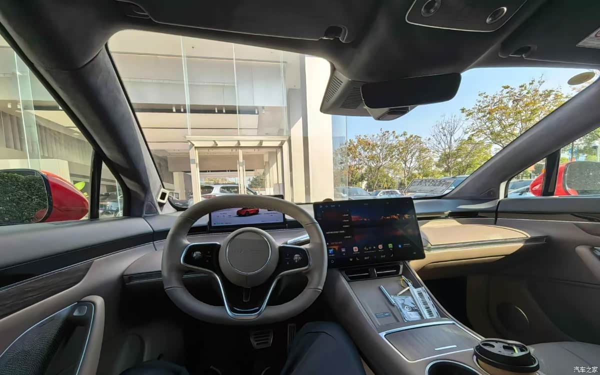 我选的是松露棕,比较特殊的颜色,所以花了点时间等车交付,到手挺惊艳的,第一次看这样的内饰设计,颜色高档又尊贵,设计时尚又简洁,整个车透出一股贵气感。中控区的设计采用了T型的,中间的中控大屏分辨率高,用手点按,触控效果很丝滑,边框比较窄,视觉效果不错,扶手箱下面配的车载小冰箱挺实用,省的我自己再去花钱买了,配置很高。