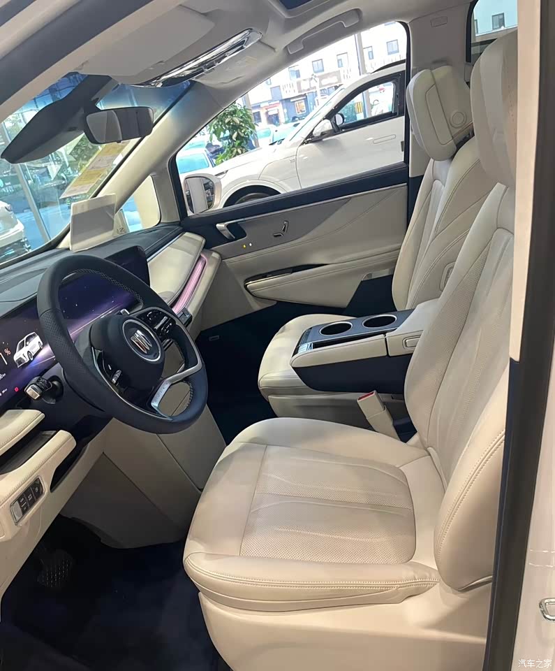 驾驶舱宽敞明亮,二排采用全新羽感航空座椅,对骨架、材质、功能进行全面升级,具备六向航空头枕、四向电动腰托、电动腿托等功能,乘坐体验舒适;三排空间表现良好,过道宽敞,上下车方便,长途乘坐无压力 。