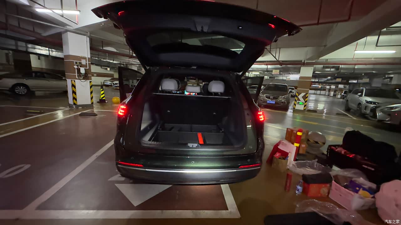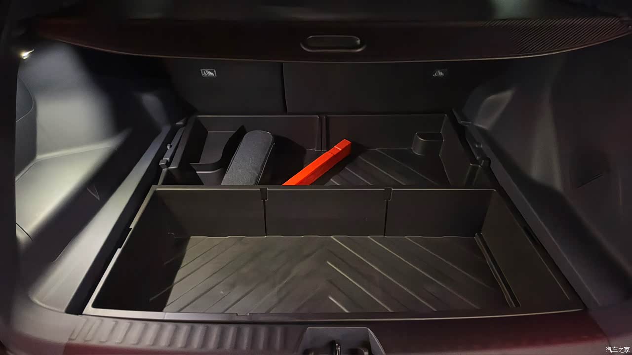 车内储物空间巨大,车门储物空间都很宽裕,再加上中岛下部挖空做了一个超大空间,自己上tb买个硅胶分区储物垫,就把空间分配好了,很多杂物可以放置。特别是后备箱,一台插混+19度电池+51L油箱的a级suv,居然有这么大的尾厢,装一整套露营装备绰绰有余。买了2个储物盒。简直了。过去我的x3只能勉强装下,而星舰7的下沉尾箱部分已经装载好了,上面还留了一个完整的尾箱空间,简直跨界货拉拉了