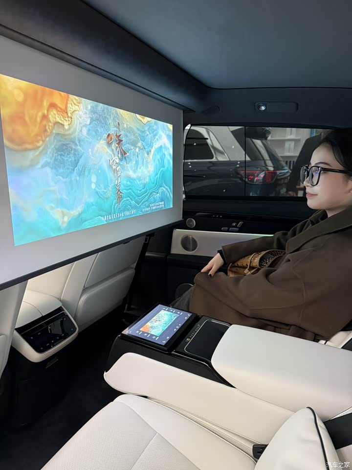 豪华舒适,尽享品质 坐进车内,那种豪华感扑面而来。座椅柔软舒适,就像被云朵包裹着一样,让人一坐上去就不想起来。全系标配的头枕、腰托、电动座椅调节,以及座椅按摩功能,为驾乘者提供了极致的舒适体验。后排更是配备了投影幕布和车载冰箱,让长途旅行也能变成一种享受。车内的空间非常宽敞,无论是前排还是后排,都能让乘客自由伸展身体,不会感到丝毫的局促。