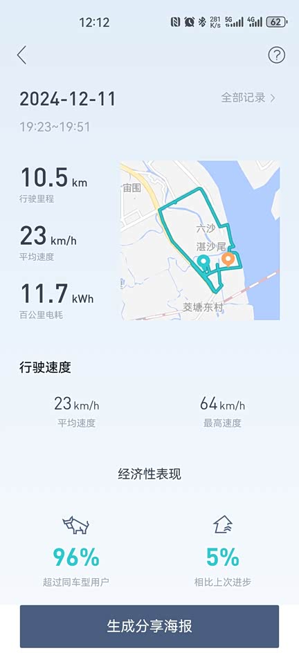 电车通病,高速开快了电耗高。冬季气温低了高速空气阻力更大一点,来回三百公里左右差不多用电从70%多到15%了。