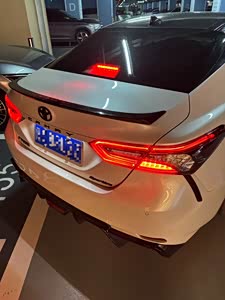 凯美瑞优雅的外观造型。 凯美瑞的外观造型有两种,运动版和运动版以外的造型,运动版看起来显得非常的运动和年轻,符合了追求速度与激情的年轻消费群众的需求,不过我的是豪华版,豪华版外观造型相比运动版来说虽然没有那种运动气息,不过也是显得年轻化,比运动版多了一份稳重的感觉。 全新凯美瑞激进造型的设计风格不仅仅是前脸,后尾部也时刻保持着这份激进的设计风格来与前脸相互照应,运动版后面的双边共四出排气、后备厢盖上的扰流板、保险杠下方的扩散器以及尾灯组下方的延长线都展现出运动激情化的一面,而豪华版车型尾部设计中也可以看出对追求生活态度的感觉,运动版以外的车型还有双边共两出和单边单出排气。 不过既然选择凯美瑞,后期费用也是在购车时候要考虑清楚的,如果年轻人又想买运动版,又想后期成本不用花那么多,也不是没有办法的,可以考虑一下双擎版,轮胎后期成本固定。
