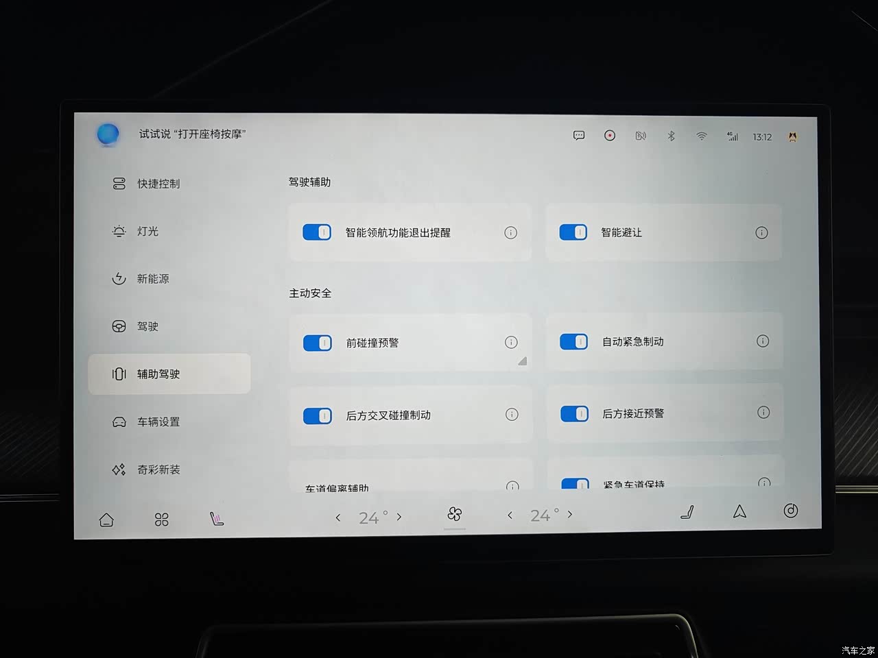 常规的驾驶辅助基本都有,前单目摄像头L2自动驾驶,全景360,透明地盘。然后并线辅助是我非常喜欢的功能,变道的时候可以很直观的反馈左右盲区有没有车,我觉得对我的驾驶安全帮助很大。豪华版有前排座椅通风加热按摩,算是我用的最多的功能了,一上车就得喊小奇给我打开座椅按摩,媳妇在副驾坐着的话也给她一起安排上,就是气囊的按摩头力度低了些。车机可玩性上面,奇瑞还有很大的进步空间,当然买T9的一般也不是奔着车机去的,反正车机这一块不要期望太高,抱着够用就行的态度,后期还是看奇瑞多ota吧。那么大一块显示素质可以的屏幕,不拿来利用一下真的浪费了,奇瑞快把你那祖传的双联屏丢了吧,全身心投入到大屏车机的开发,这是以后的潮流趋势。