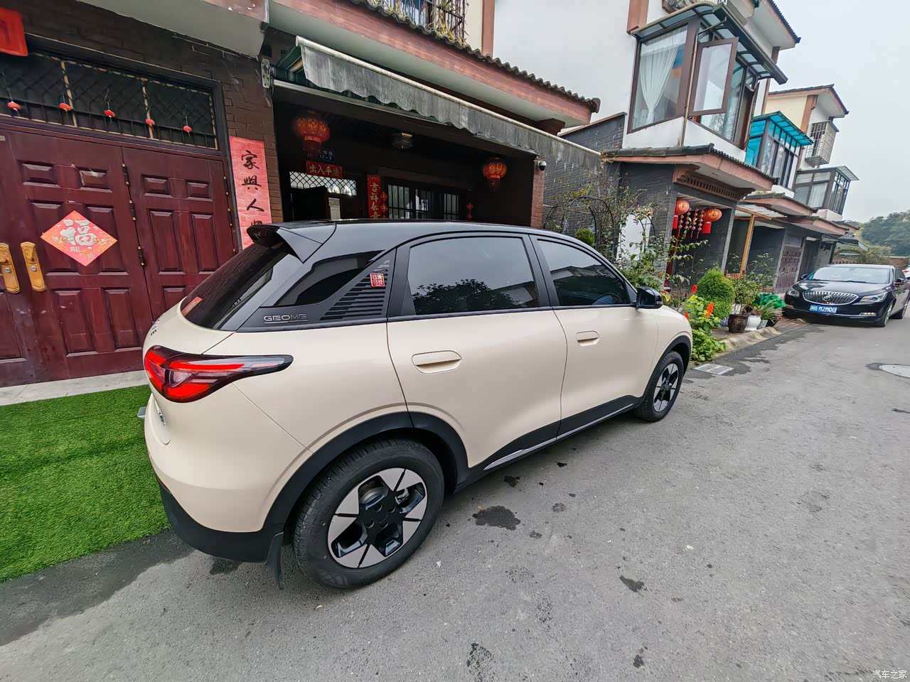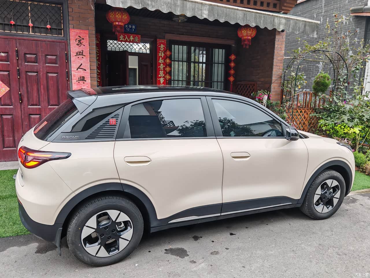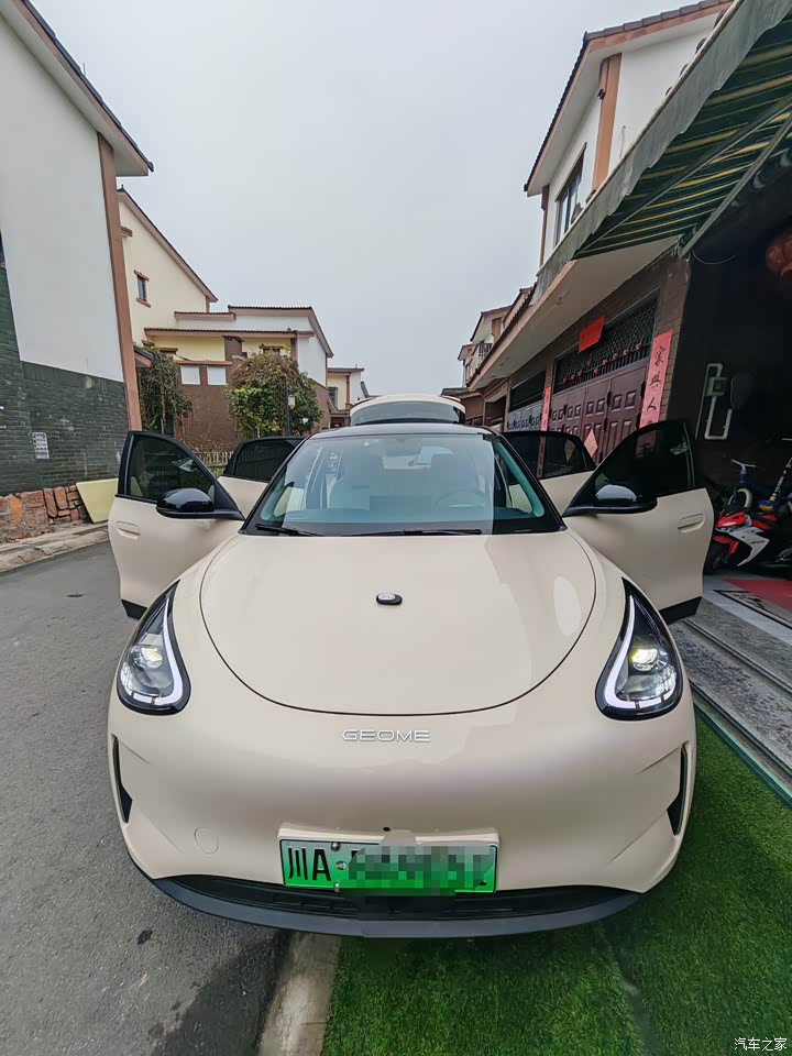 外观是最满意的之一,贴个黑顶黑耳朵,颜值立马就起来了。 1.整体圆润,没有攻击性,晓得性格温和。 2.悬浮顶只有顶配才有,还好贴改色膜成本不高,贴可以后立马颜值起来了。 3.侧面看很像smart精灵,本来就是一个老板。说实话第一次买国产,国产的外观设计比映像中好太多了。