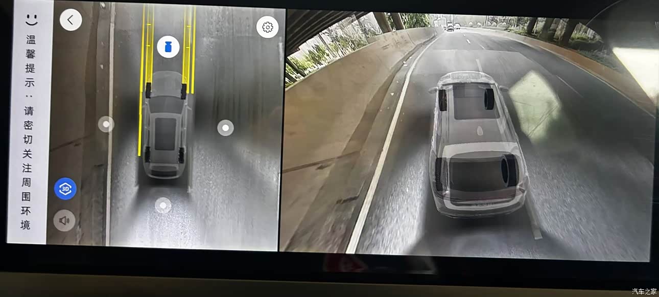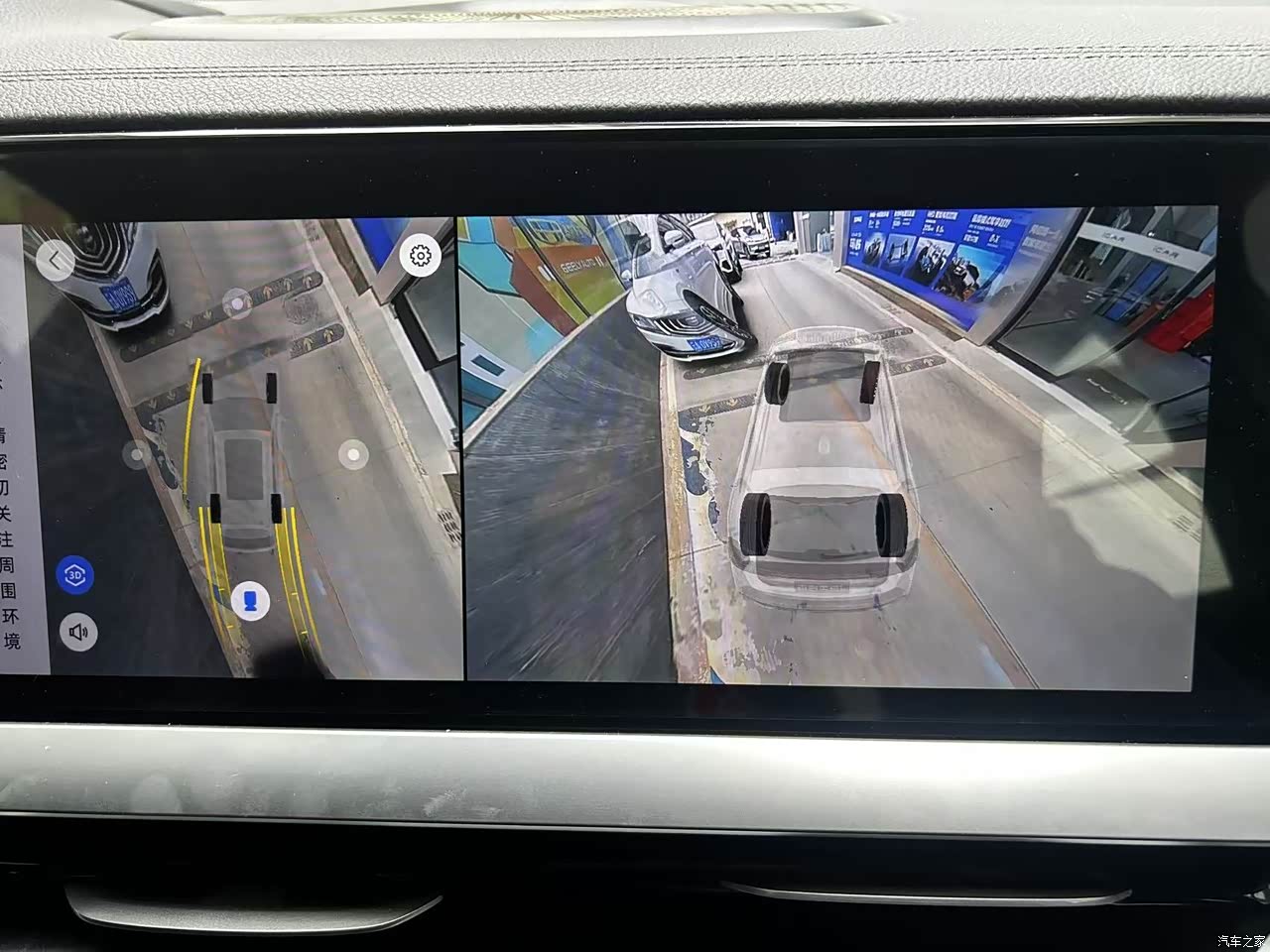 这个车的360全景看的还是很较清晰的,它是3d和2d的,带的还是个透明的影像,平时打转向灯也可以自动跳出来,并且方向盘上有个一键的功能,也可以设置成全景影像,像平时拿不稳的左右方就可以先点360看一下,左右是可以单独看的。
