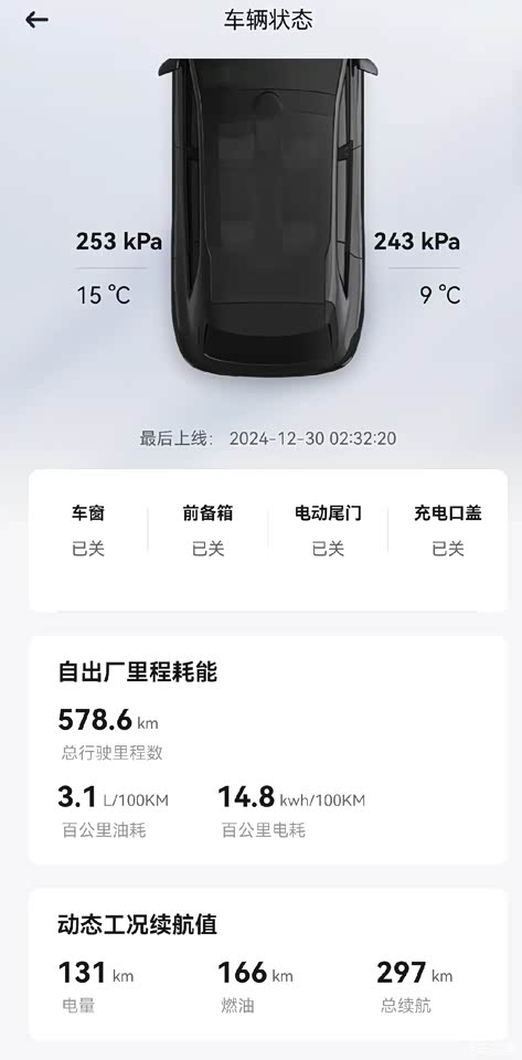 增程模式下,油耗3.1L/100km,电耗14.8kwh/100km
