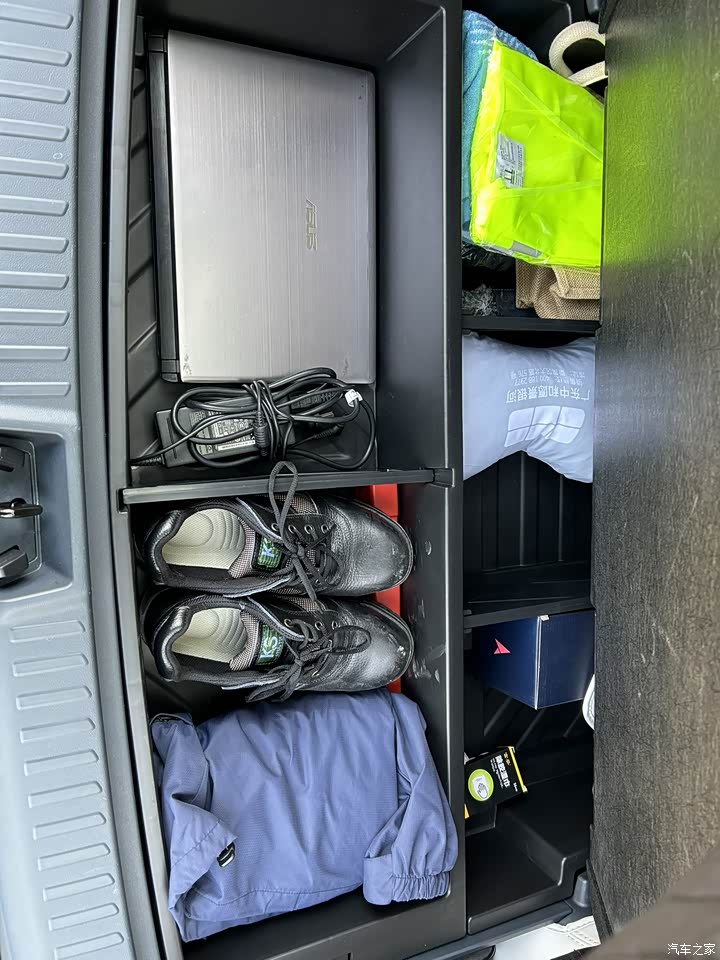 最满意是的空间收纳。我属于车上很多东西的人(工地佬),以前的思域后尾箱常年塞满,现在E5后尾箱下沉空间已经够我用了。(买了个专用收纳架,下沉空间很深,现在分2层使用)