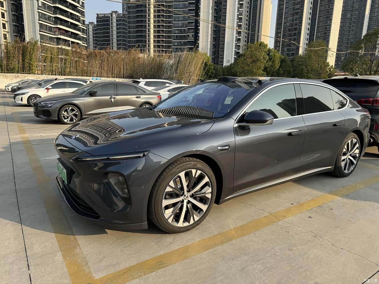 说到外观,et7这车真是挺对我的胃口的。线条流畅,溜背式的造型,看着很稳重,但又有科技感,领先、不守旧的感觉。车头很大气,大灯一亮,那气势就出来了,配上大轮毂,动感十足。车尾设计简洁,尾灯的造型很独特,一眼就能认出来,辨识度很高。
