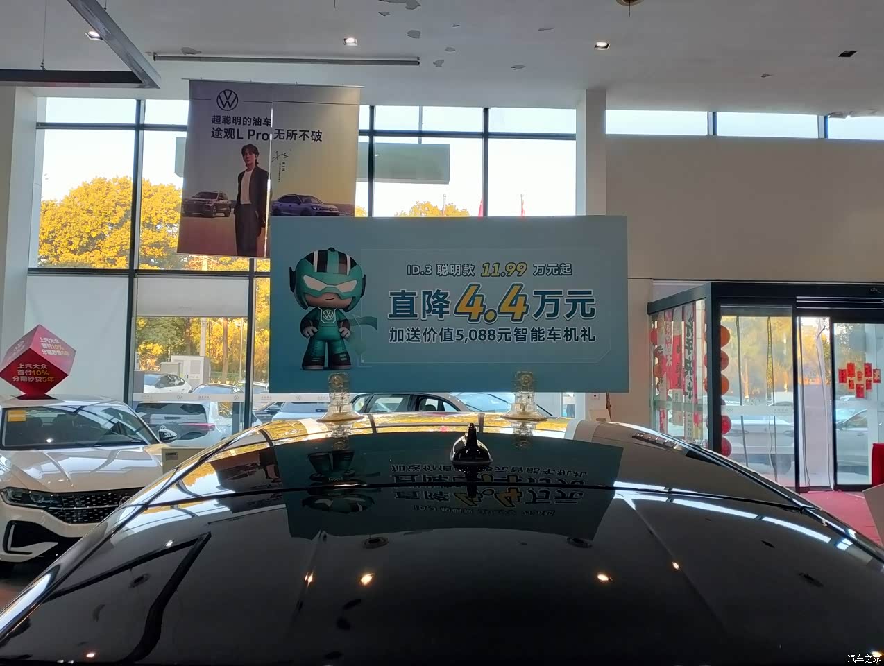 价格方面,我还是感觉差了一点意思,这个车顶上的宣传标语说优惠4.4,是不是包含了报废补贴、置换补贴和贷款返息补贴等等就不得而知了。