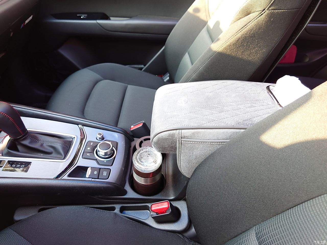 这车的空间还是挺不错的,我直接把主驾座椅调到最高,我头顶还有一拳的空间。后排空间不会太宽,但是够用,成年人坐后排不会觉得很挤。之所以看起来空间不大,我估计是因为马自达为了让乘客坐的更舒服,座椅做得比较宽,显得空间小,如果椅面做窄5公分,空间一下就大好多了。这车座椅还有一个特点,那就是比较高,人坐在上面,小腿和大腿可以大于九十度,这样会比较舒服,可能跟这车比较高有关系。空间表现不够好的地方,是后排中间有个地台,如果后排坐三个人的话,中间的座位坐着不舒服。