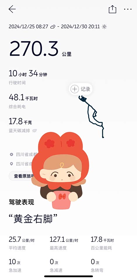 续航方面,官方标的续航是560,网络测评355,平时都会开守卫模式,自己11月测的可以达到400+,12月天冷了开加热那些就不到300了,如果按满电用完算估计320的样子。我安了家充,基本每周充一次电,15%-100%大概9个小时充60度电,额定6.6kw的桩。暂时没有换电打算,出去玩需要换的时候再换,无论如何还是得把送的20张换电券和3000的补能金额给用了。