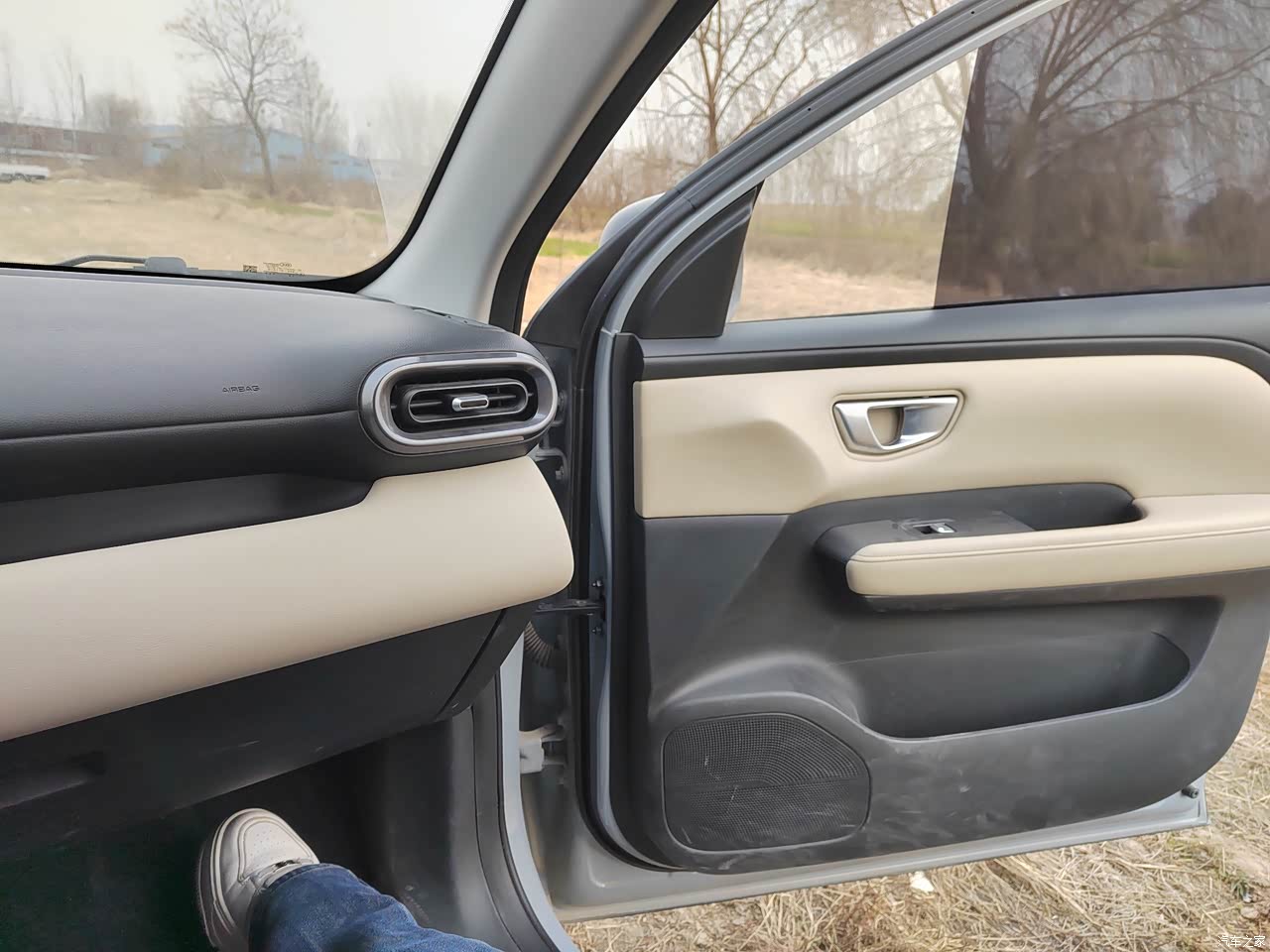 我就是一个特别简单的人,所以就不喜欢有特别复杂的东西。冰果的内饰还行,整个的话就是一个黑白套色的内饰座椅和这个扶手都是白色的,然后车的前排我看上面仪表台是黑色的,下面也是一个米白的内饰的一个皮质包裹,坐进去的感觉就是非常的明亮,也没有任何的异味,这就说明它的内饰的质量还是过关的。