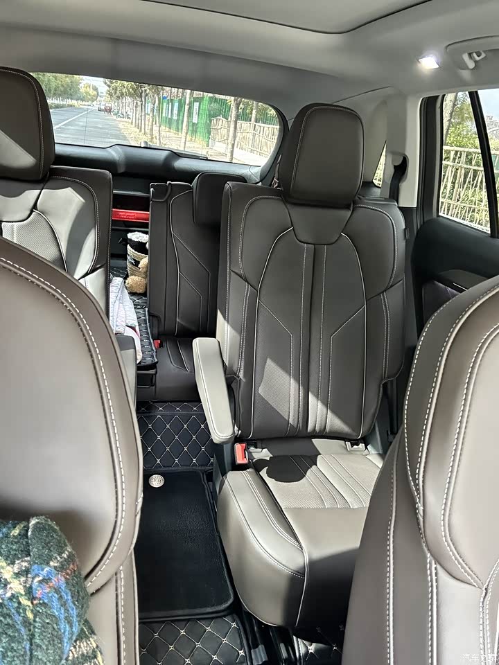 车身尺寸 4876mm×1860mm×1675mm,轴距达 2965mm,三排布局设计很合理。我 1.6 米的身高坐在第三排,把第二排座椅往前挪挪,视野开阔,坐着也舒服,完全没有憋屈感。超大行李箱空间,出去旅游、带娃出门,再多装备都装得下,妥妥的二胎家庭出行神器。中午累了,把第二排、第三排座椅放倒,开着空调在车里舒舒服服睡一觉,别提多惬意了。