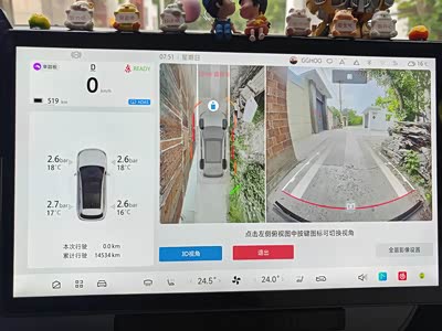 前视图 在全景影像界面切换到前视图,能清晰看到车辆前方的路况,包括车头附近的障碍物、行人以及前方道路的状况等。影像画质清晰,即使在光线较暗的环境下也能提供较好的可视效果。并且,前视图中还配有可随动的辅助线,能帮助驾驶者准确判断车辆与前方障碍物的距离和行车轨迹。 3D视图 3D视图提供了更加立体和直观的车辆周围环境展示。可以通过滑动屏幕或点击相应按钮,实现360度环绕查看车辆四周,能让驾驶者全面了解车辆所处的位置和周边情况,无论是车身周围的障碍物,还是车底的地形起伏等都能一目了然。车辆上电后打开全景影像,可自动打开3D视角并环绕车旋转一周,方便驾驶者快速掌握车辆周边状况。 右视图 右视图在车辆向右转弯、变道或右侧停车时非常实用,能让驾驶者清楚看到车辆右侧的情况,包括右侧后视镜盲区的物体,有效减少因视线盲区导致的刮蹭事故。