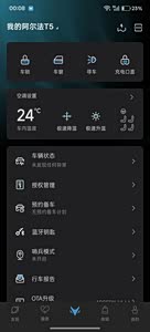 屏幕大小与分辨率:极狐阿尔法T5搭载15.6英寸悬浮式中控屏,屏幕分辨率为1080P,显示效果清晰细腻,色彩饱满。 音乐界面:可通过中控屏打开音乐应用,如QQ音乐。支持小屏播放并显示歌词,用户长按左边小屏幕弹出仪表区自定义,将多媒体卡片添加后保存,再滑动小屏找到音乐卡片,长按弹出歌词并点击保存播放即可。 主界面- 胎压监测信息:通过长按仪表盘下面的卡片进行切换添加,可显示四个车轮的胎压情况,以及本次和累计的行驶里程,便于驾驶者实时掌握轮胎状况,保障行车安全。 布局简约:内容丰富,左上角显示常规仪表内容,如时速、挡位、驾驶模式以及续航里程等。功能区无实体按键,采用极简风格设计。 控制中心:屏幕下拉页面是控制中心,可对车辆进行细致控制,且功能列表可根据用户喜好和使用习惯调整。