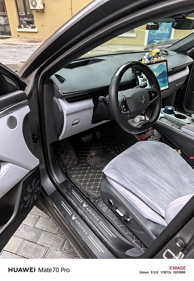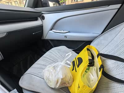 10月11日清晨,天气晴朗,我开着极狐阿尔法T5去小区附近买无锡汤包。车辆外观为海岩灰色,内饰是远星紫配色,座椅采用云绒材质,触感偏凉,中控台有碳纤维饰条。 出发前,我清理了副驾空间,准备用黄色布袋装汤包。小区内道路较窄,起步时电门响应平顺,方向盘转向力度适中,通过减速带时车身有轻微颠簸,但不明显。行驶中,车窗隔音效果尚可,能隔绝大部分外界噪音。 抵达汤包店后,借助中控屏的全景影像,顺利完成停车。行车数据显示,本次行程3.6公里,百公里电耗14.0kWh,系统提示该电耗优于73%的同车型用户。 买好汤包后,将其放入副驾的黄色布袋中,空间放置规整,无晃动。返程时,车内能闻到汤包的香气,整体来看,这次短途出行的用车体验较为顺畅。